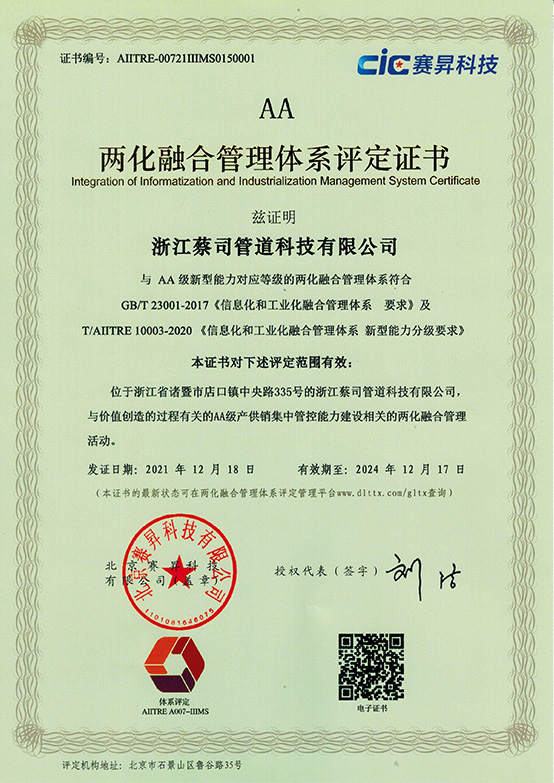 兩化融合體係證書