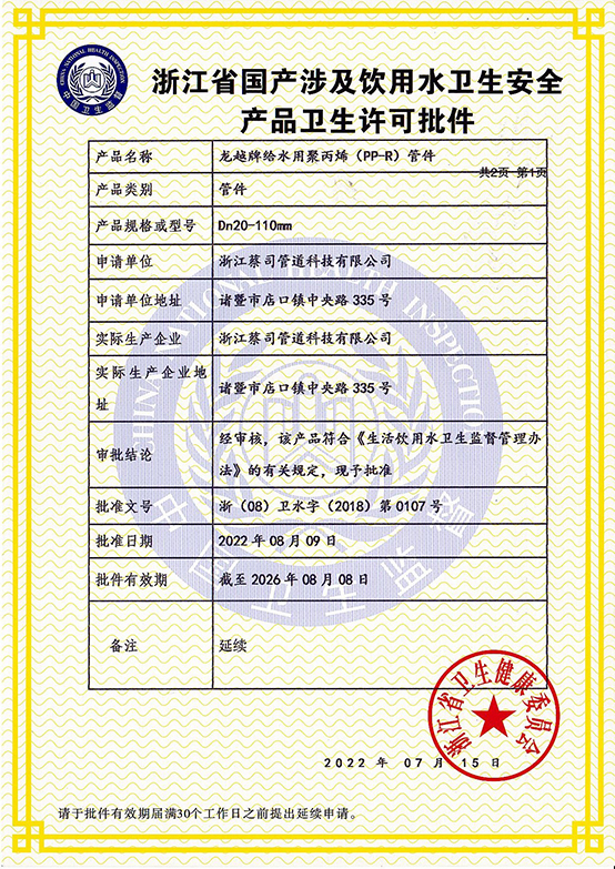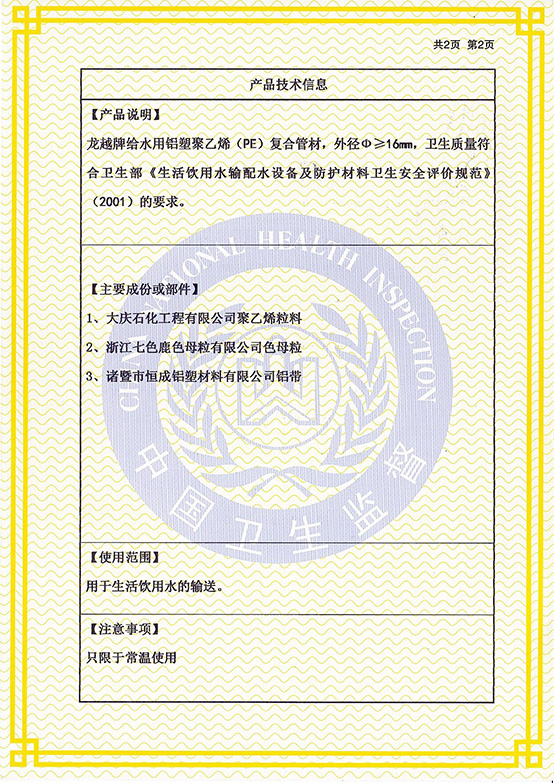 鋁塑(sù)管衛生許可2022-2